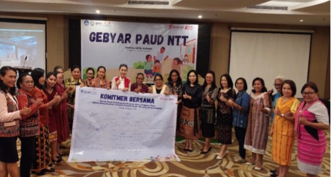 Acara gebyar PAUD 2023 yang dilaksanakan di Kota Kupang, dihadiri seluruh perwakilan bunda PAUD dari seluruh Kabupaten Kota se Nusa Tenggara Timur dan dilakukan  penandatanganan komitmen bersama dalam menyukseskan gerakan transisi PAUD-SD yang menyenangkan.