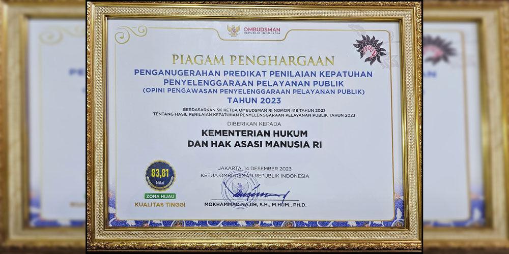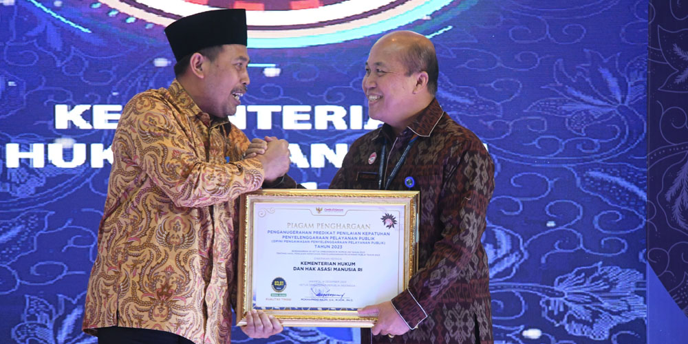 Jakarta, kupangmetro.com- Di penghujung tahun 2023, sekali lagi Kementerian Hukum dan Hak Asasi Manusia (Kemenkumham) menorehkan prestasi membanggakan. Kali ini penghargaan diraih dari Ombudsman RI dalam Penilaian Kepatuhan Penyelenggaraan Pelayanan Publik. Penghargaan ini di terima oleh Hantor Situmorang, Kepala Biro Humas, Hukum dan Kerja Sama yang mewakili Kementerian Hukum dan HAM.