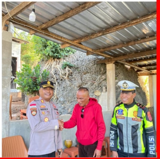 Kapolres Sabu Raijua, AKBP Paulus Naatonis, S.I.P., M.H., didampingi Kasat Lantas Polres Sabu Raijua, IPTU I. Ketut Winaya, beserta anggota Satlantas Polres Sabu Raijua, mengunjungi kediaman Purnawirawan Polri, Bapak Mikael Wilahere, di Desa Daiyeko, Kecamatan Hawu Mehara. Kegiatan ini merupakan wujud kepedulian Polri kepada masyarakat, dengan semangat “Polantas Menyapa.”